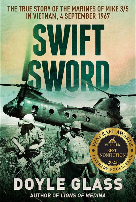 Swift Sword, chronicles the gut-wrenching story of valiant Marines in Vietnam who endured a horrific firefight isolated on a lone knoll in the Queson Valley.